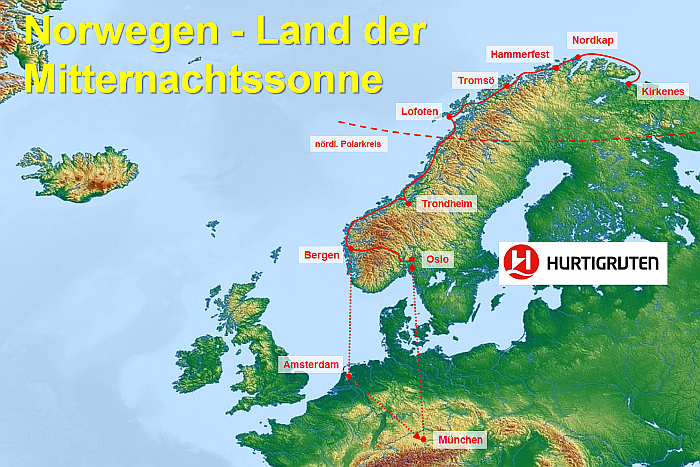 Flugzeug nach Oslo und am nächsten Tag weiter mit der