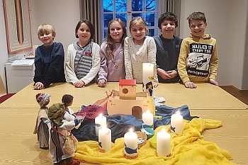 Kinder um den Altar.