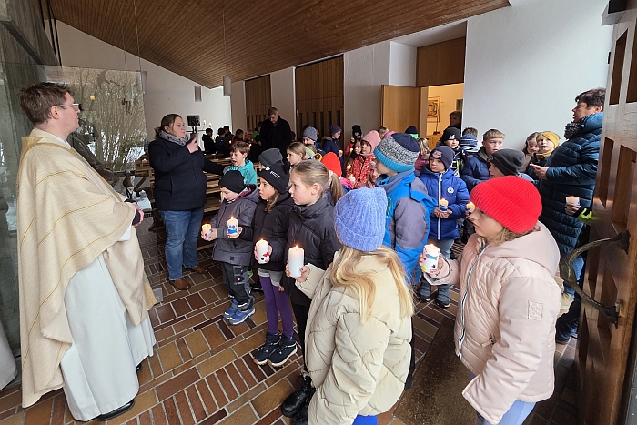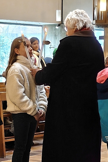 den Kommunionkindern vorbei, damit diese das Licht und