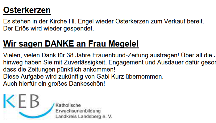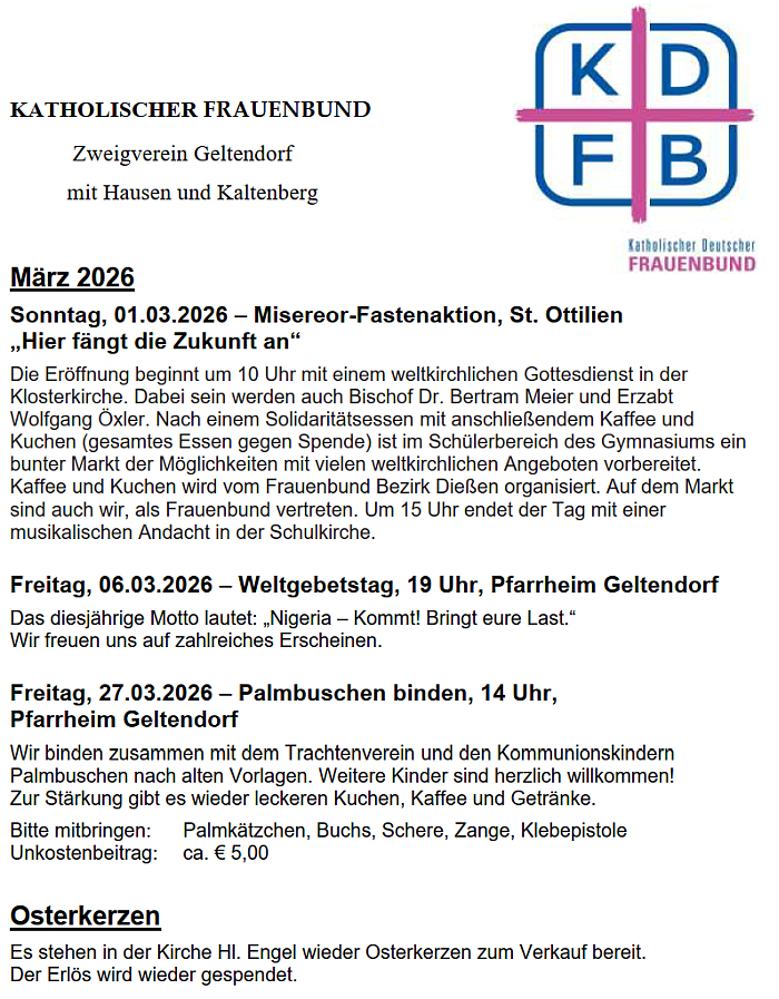 Termine und Veranstaltungen vom Frauenbund Geltendorf