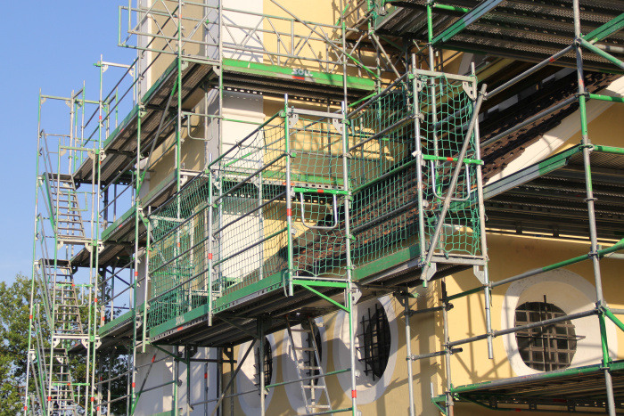 Mit dem Aufbau des Außengerüstes beginnen jetzt demnächst auch die Außenarbeiten an St. Ulrich.