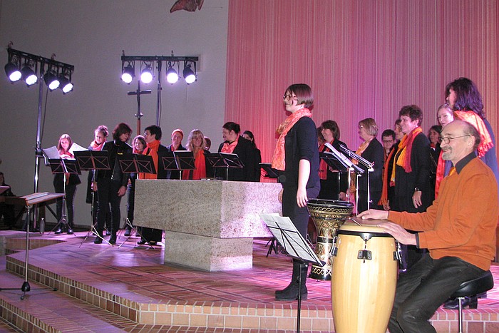 sich die Sängerinnen mit Linda Oppermann, der Chorleiterin,