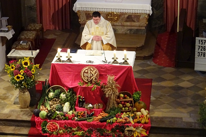 der Vorabendmesse zum Erntedankfest zelebrierte Pfarrer