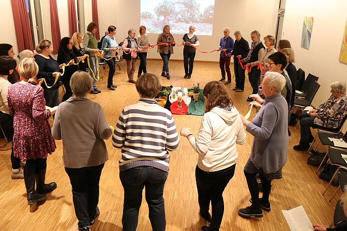 wir anschließend gemeinsam zur passenden Musik im Kreis.