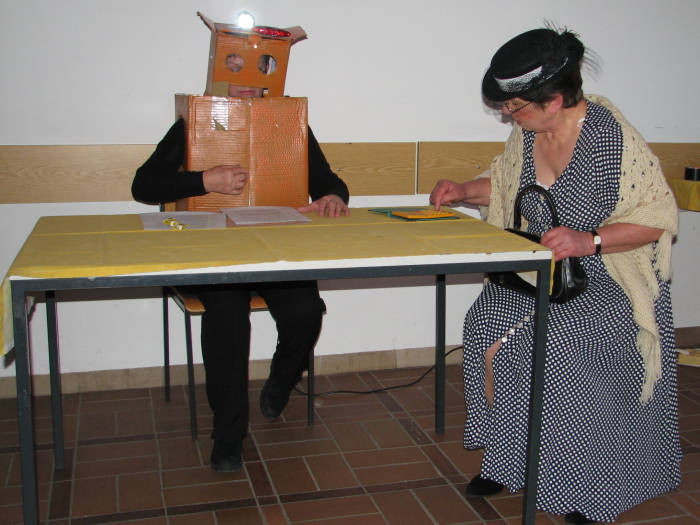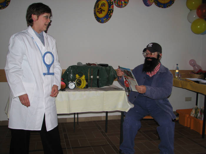 Werner Donhauser bei den Sketchen und Frau Anni Prummer