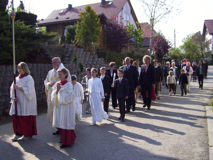 den Ministranten die Gruppe ab und geleitete sie zur Kirche. |