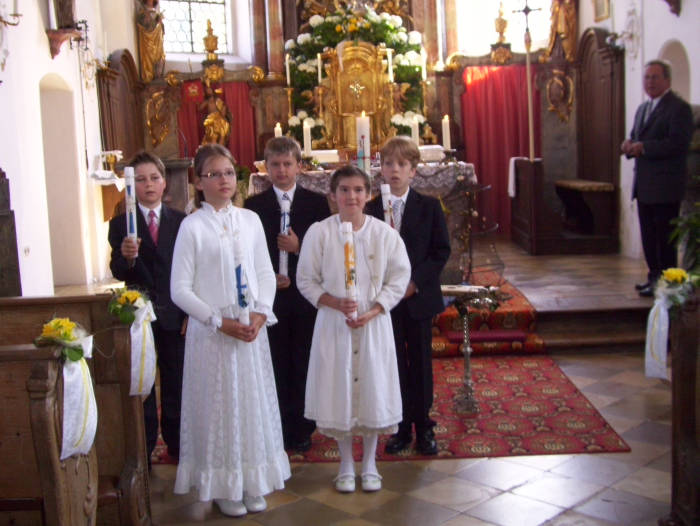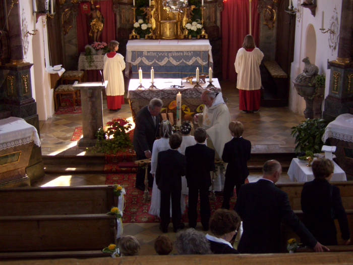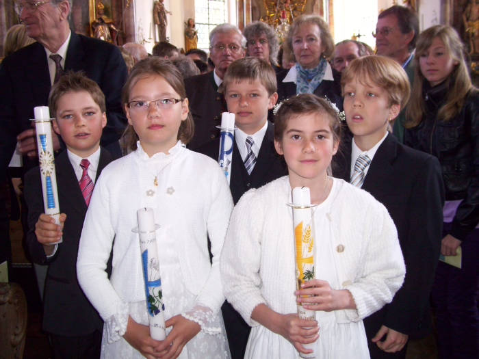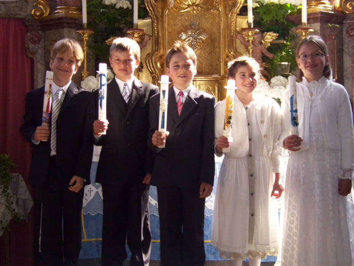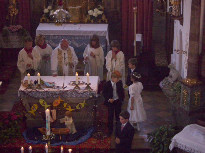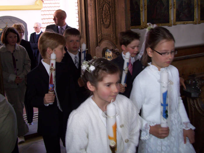 die Erstkommunionkinder mit ihren Eltern und Verwandten