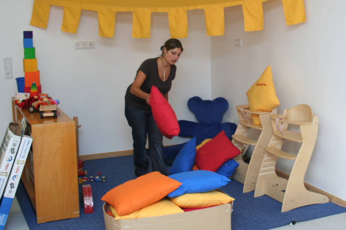 Räume der Kinderkrippe sind noch in Arbeit, aber die Erzieherinnen