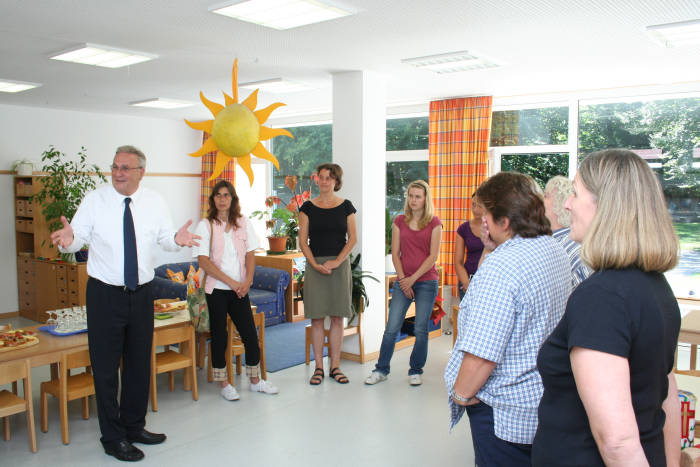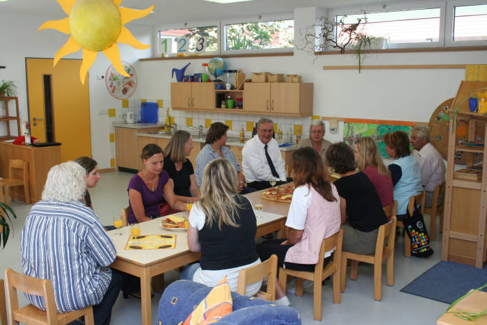 der Kindertagesstätte und alle anderen Anwesenden. Er nutzte