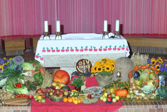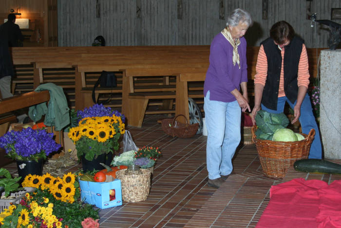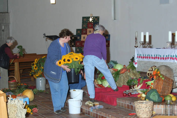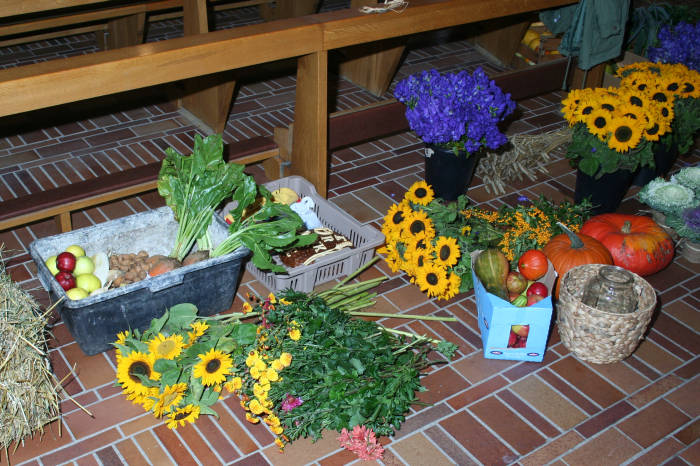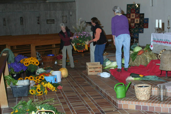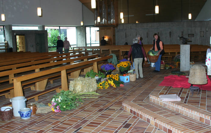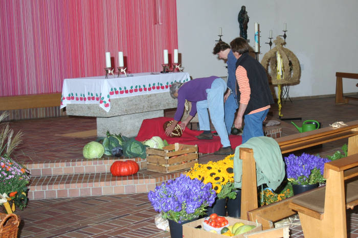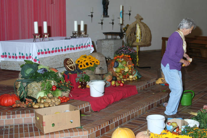 Ein ganzer Autoanhänger voll "Zutaten" wurde in die Kirche getragen und nacheinander vor den Altar gelegt.