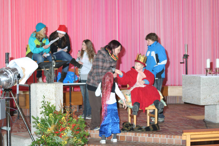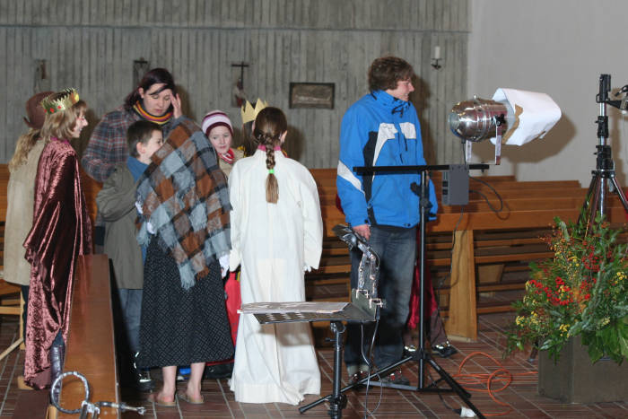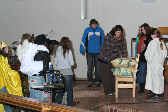 die Kirche als Bühne genutzt wird. Requisiten müssen aufgetrieben