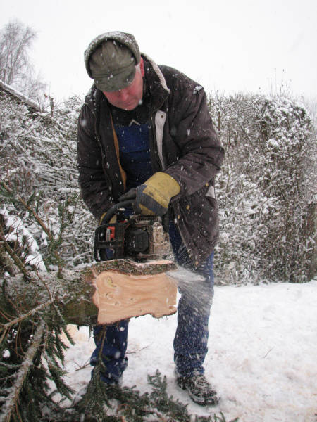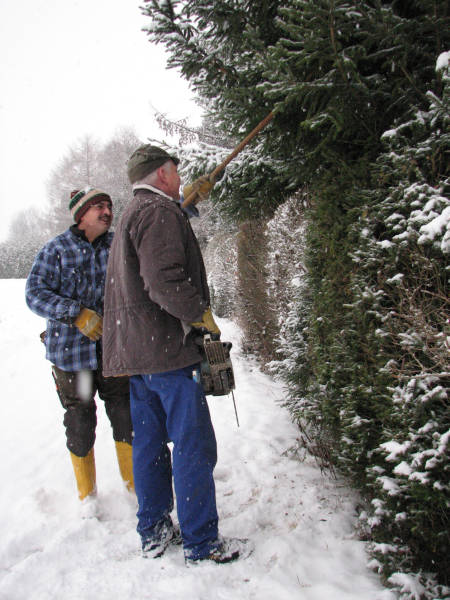 so machten wir uns bei Schneetreiben an die Arbeit. |