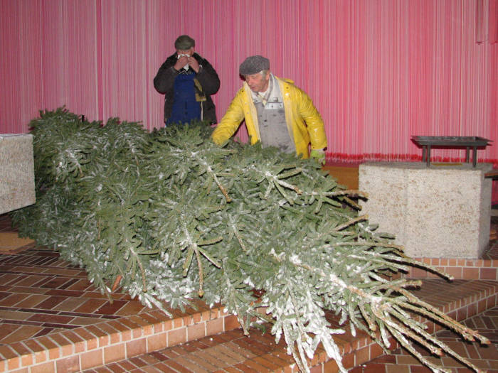 der Christbaum 2009 in der frisch geputzten Kirche. |