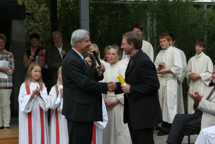und Erfolg. Die Ministranten überreichten Blumen und begrüßten